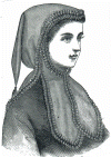 This head-dress is of figured silk lace,