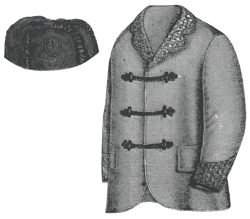 lined with black silk and bound with blue cashmere. The collar, roll,