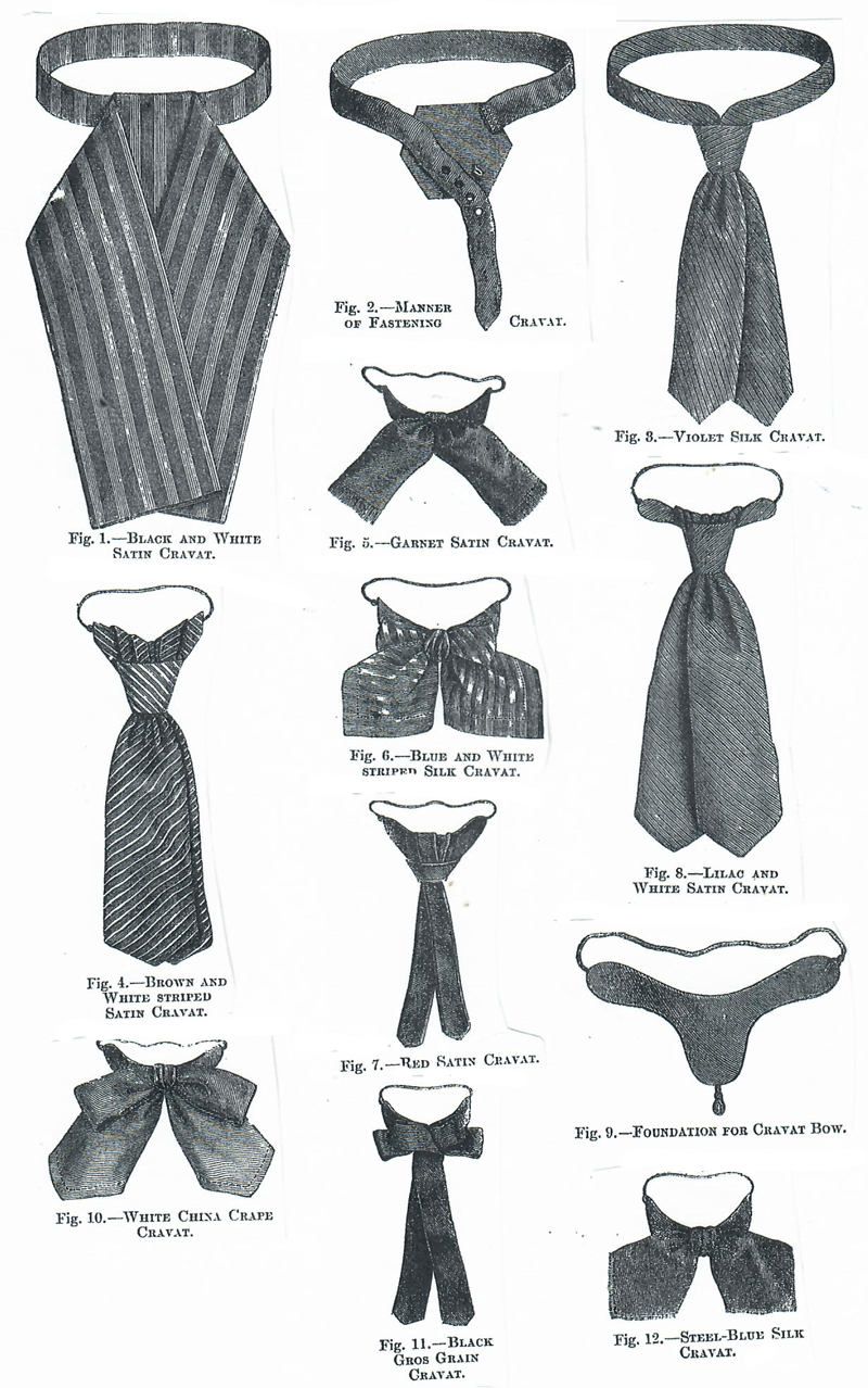 cord or hooks and eyes. The cravats, Figs. 1-3, are finished with a