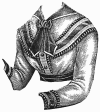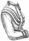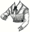left front, which laps over the right is rounded above.