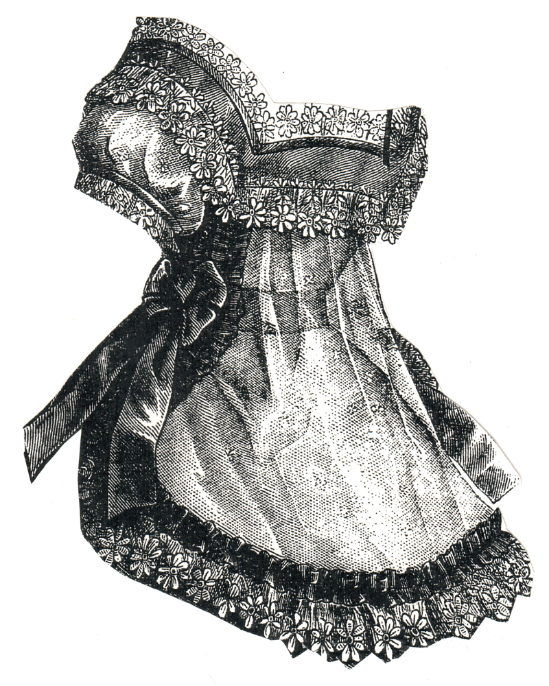 made of lawn and fine linen, and was trimmed with strips of muslin laid in