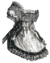 ornamented with a large collar and trimmed with narrow muslin ruffles headed