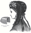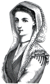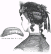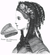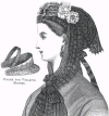 edged with lace, which covers the chignon, and on the left side a few