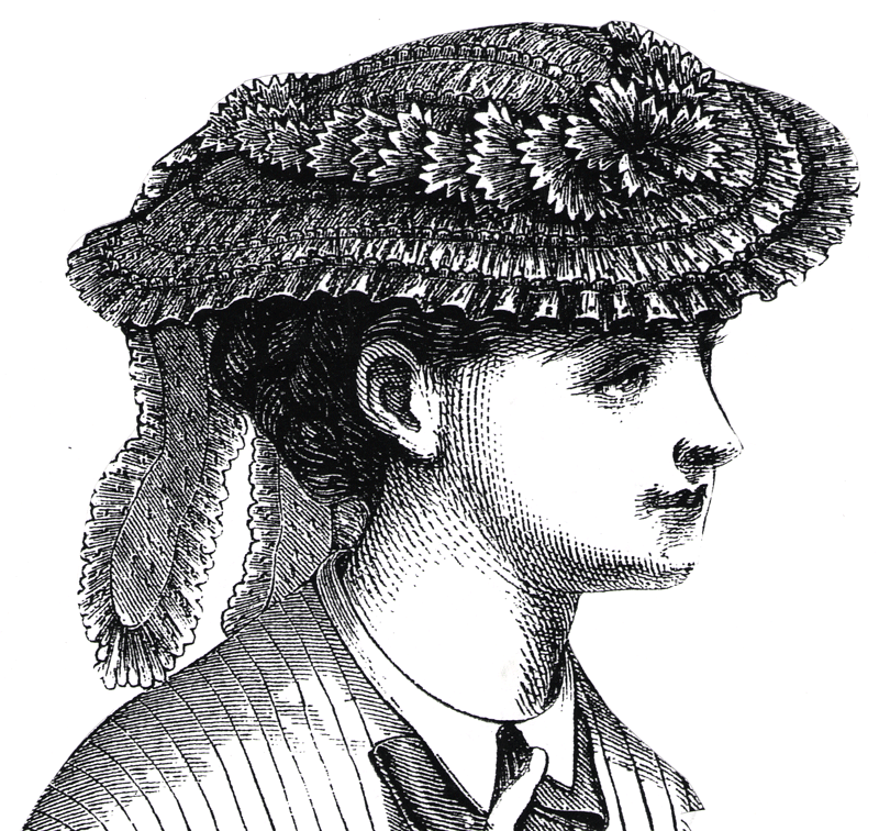 braided straw, or of figured percale, plain muslin, etc. They are