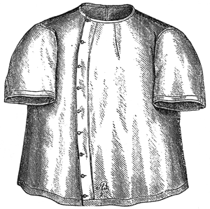 white cashmere; the sleeves short and the seams were all stitched with red