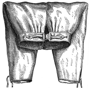 of white linen and were finished on the upper edged with a wide belt, which