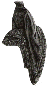 is trimmed with narrow black woolen braid, which is parlty sewed on plain