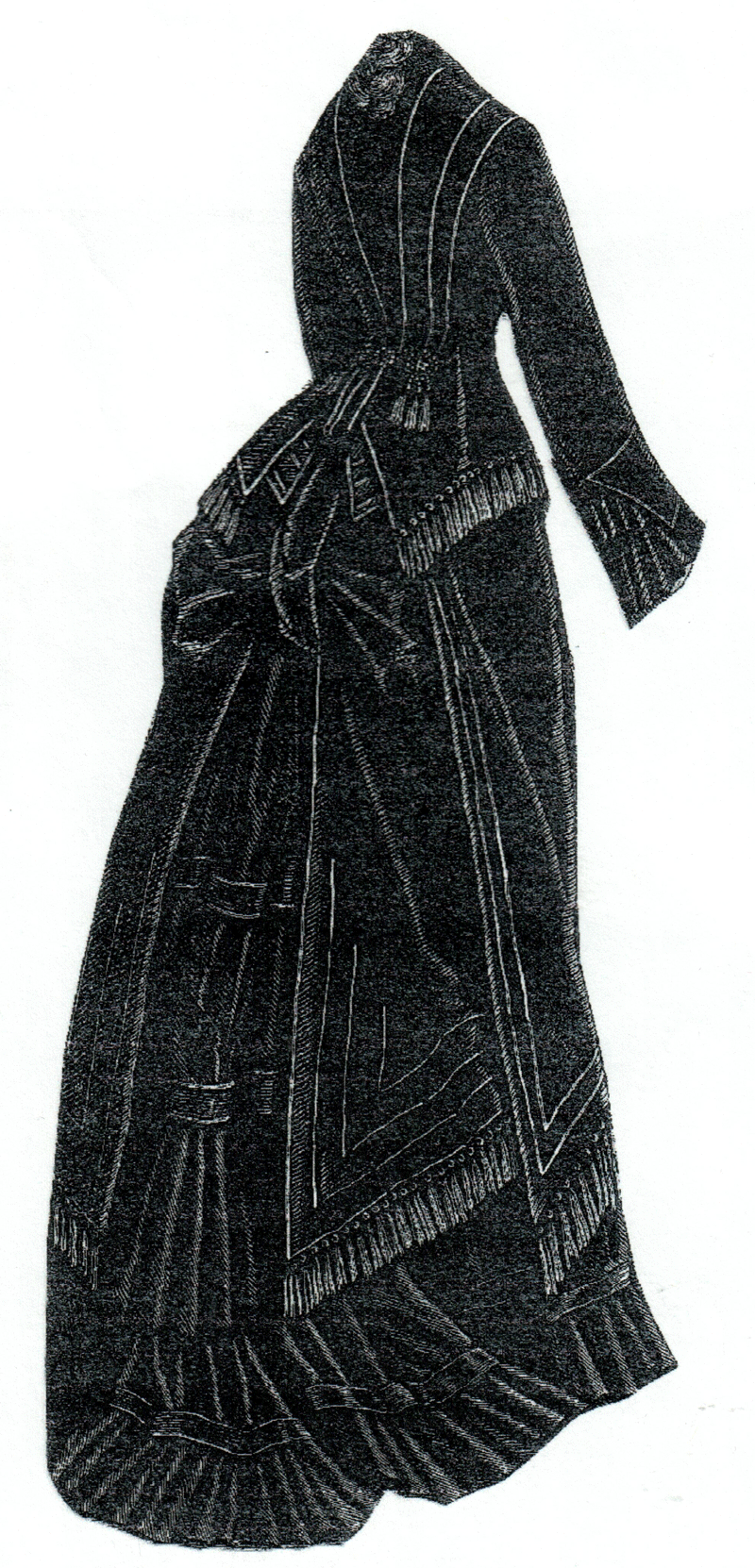 polonaise consists of folds of faille, silk fringe, and passementerie