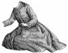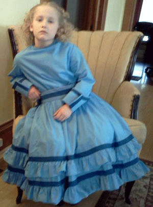 skirt and gathered waist, buttoned behind. Belt and sash of gray and