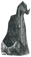 and buttonholes. The cloak is also trimmed with pleated ends and