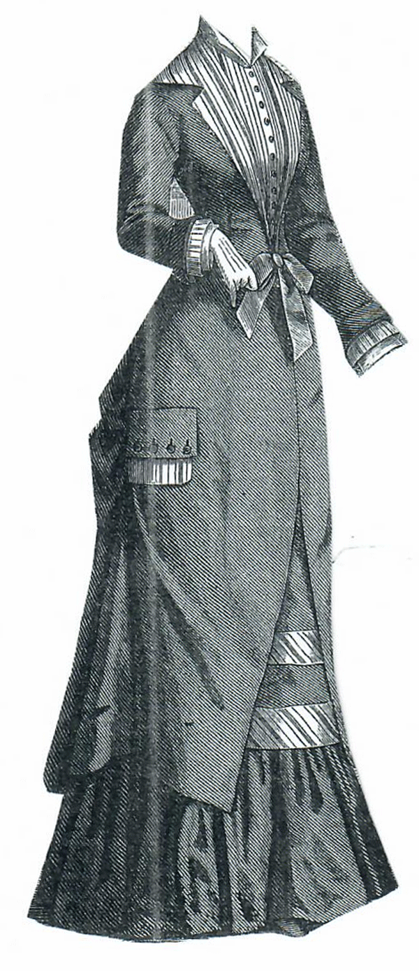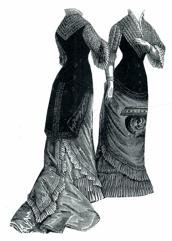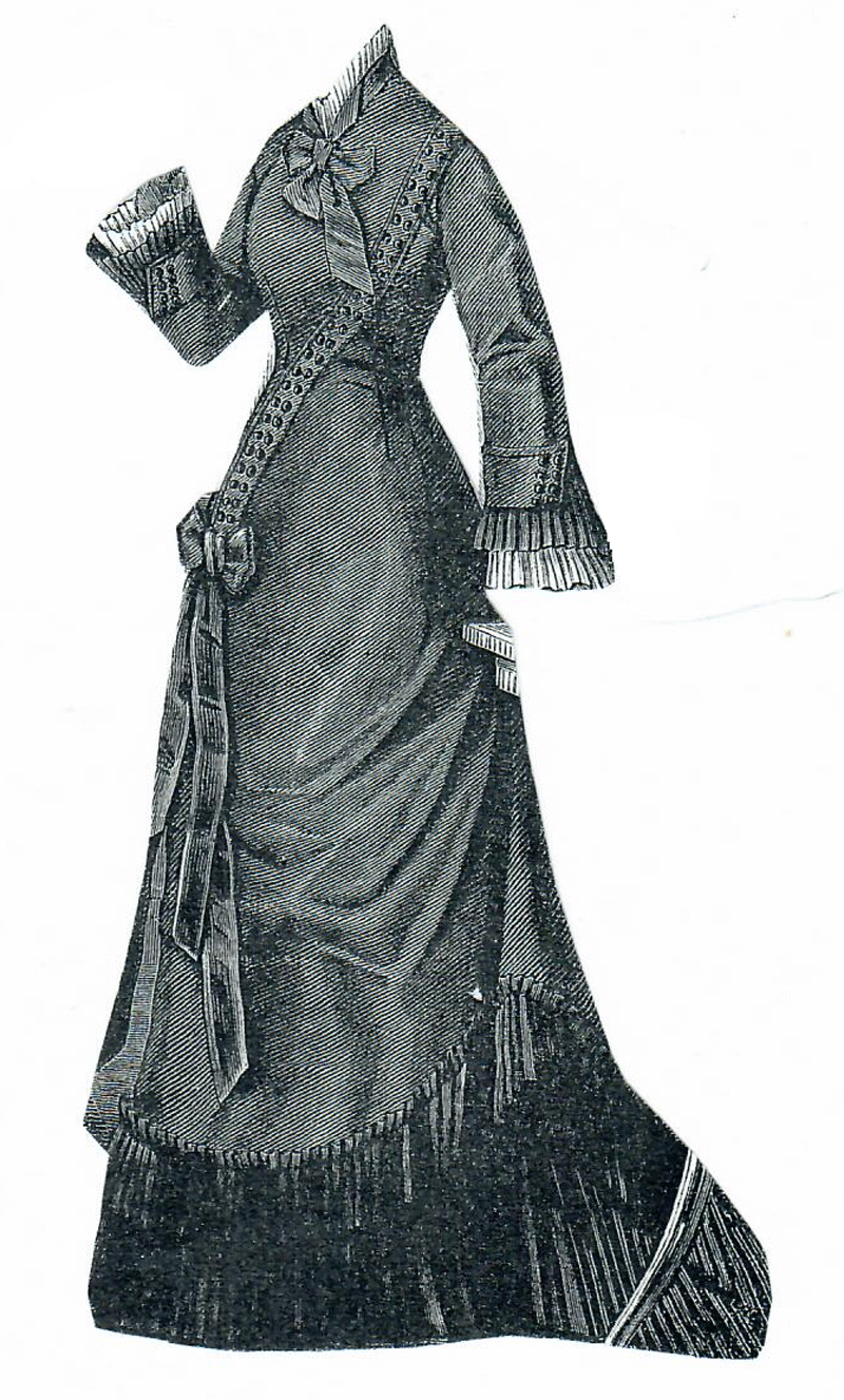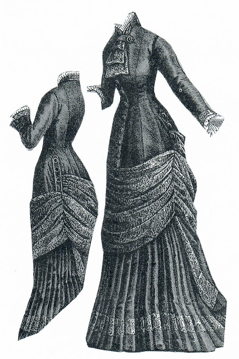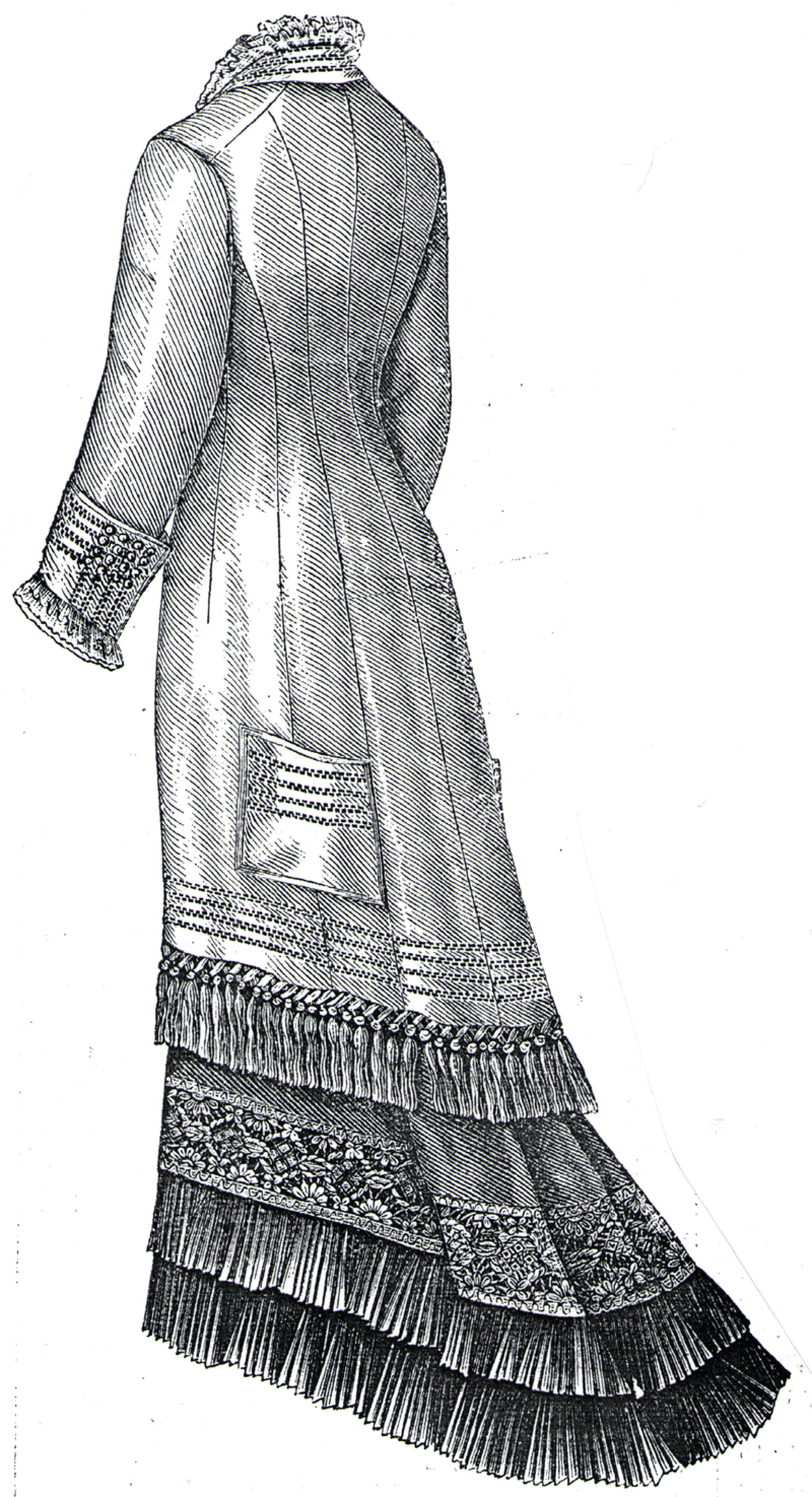 consists of a skirt and polonaise. Trimming consists of box-pleated