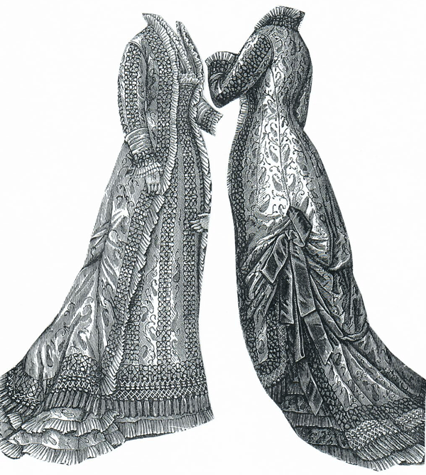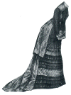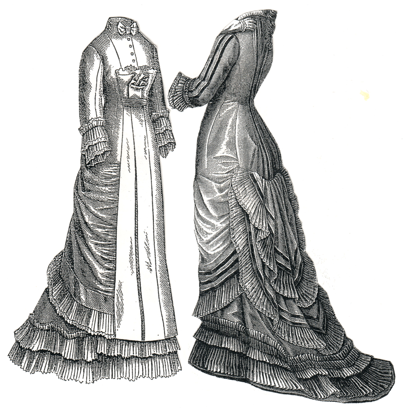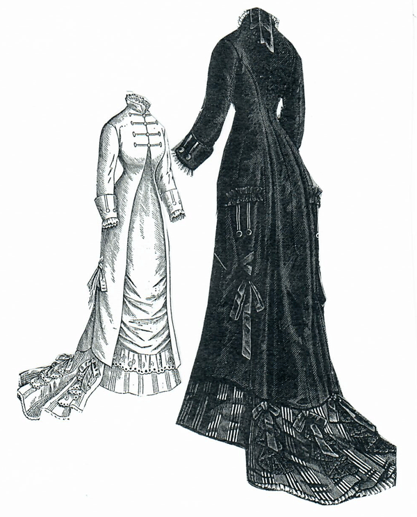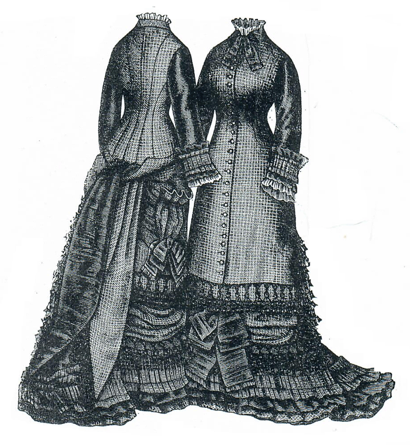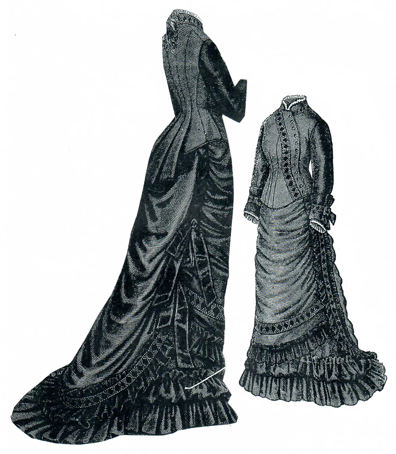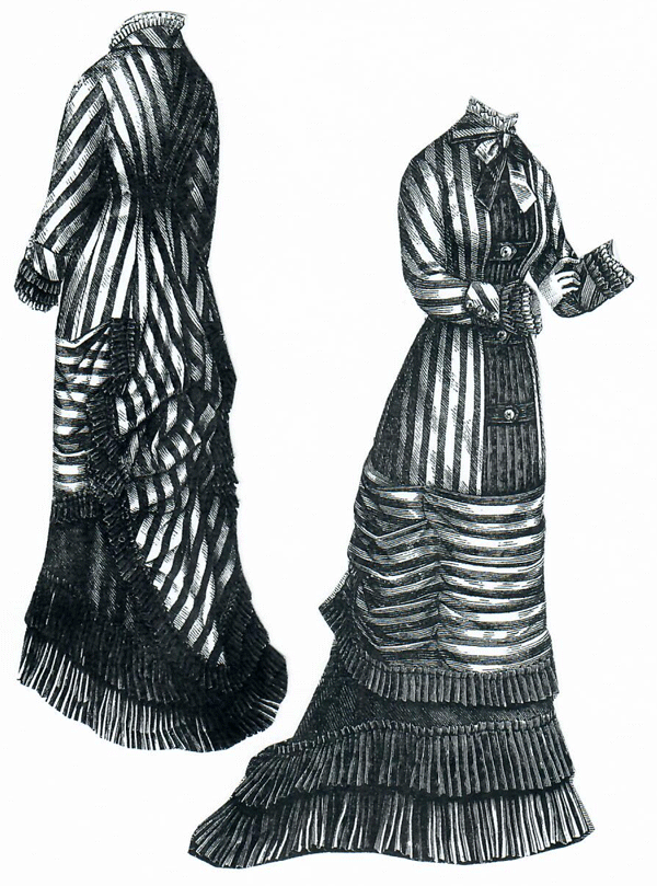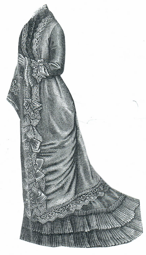 consists of a skirt and polonaise. Trimming consists of box-pleated
