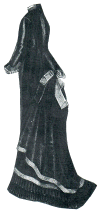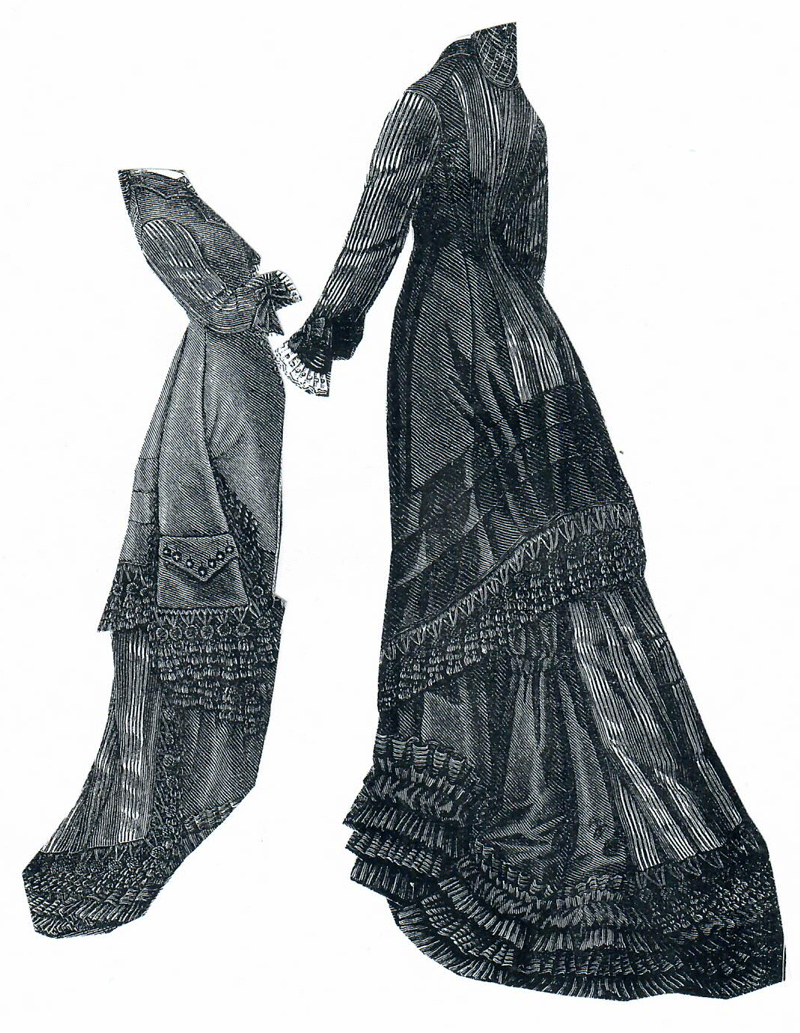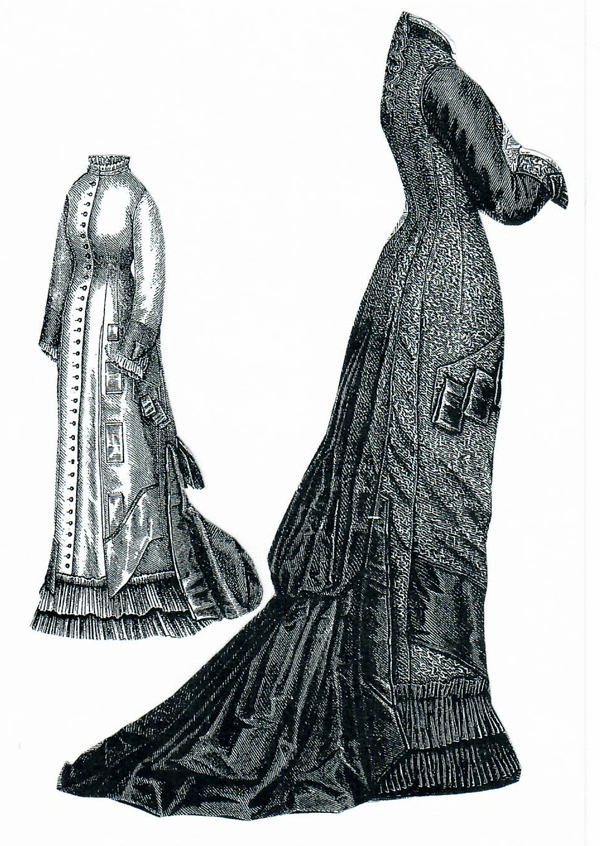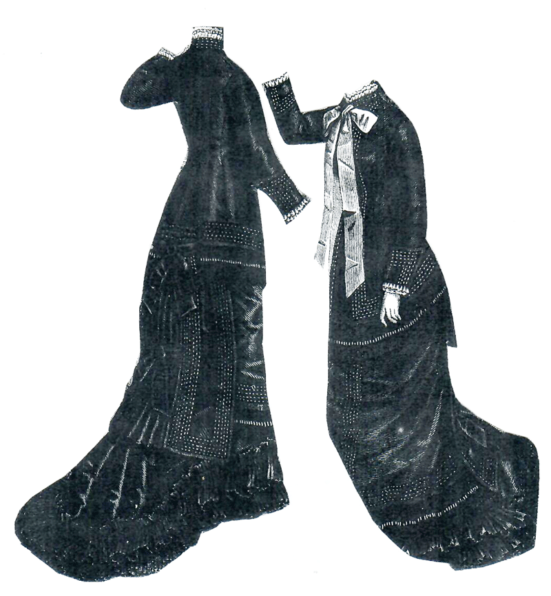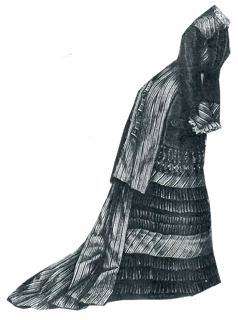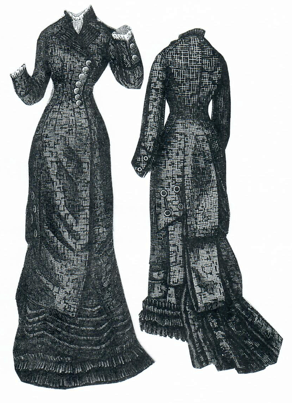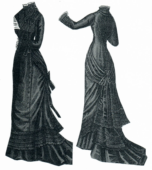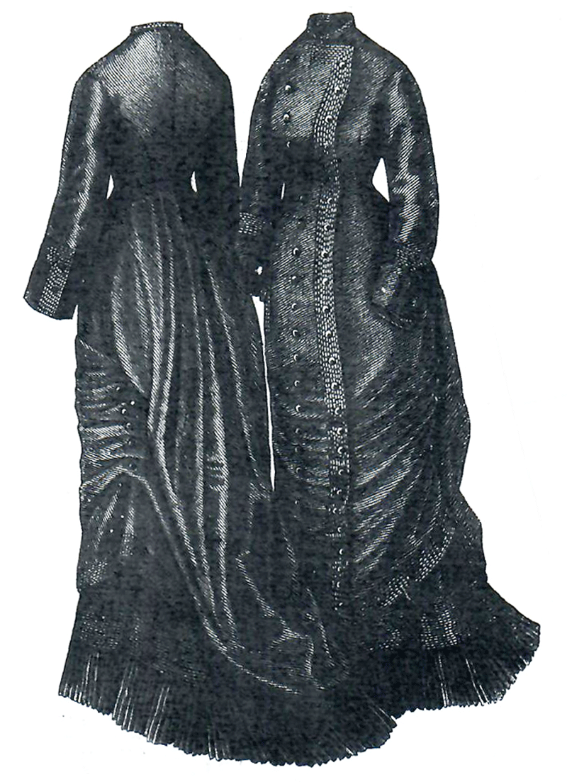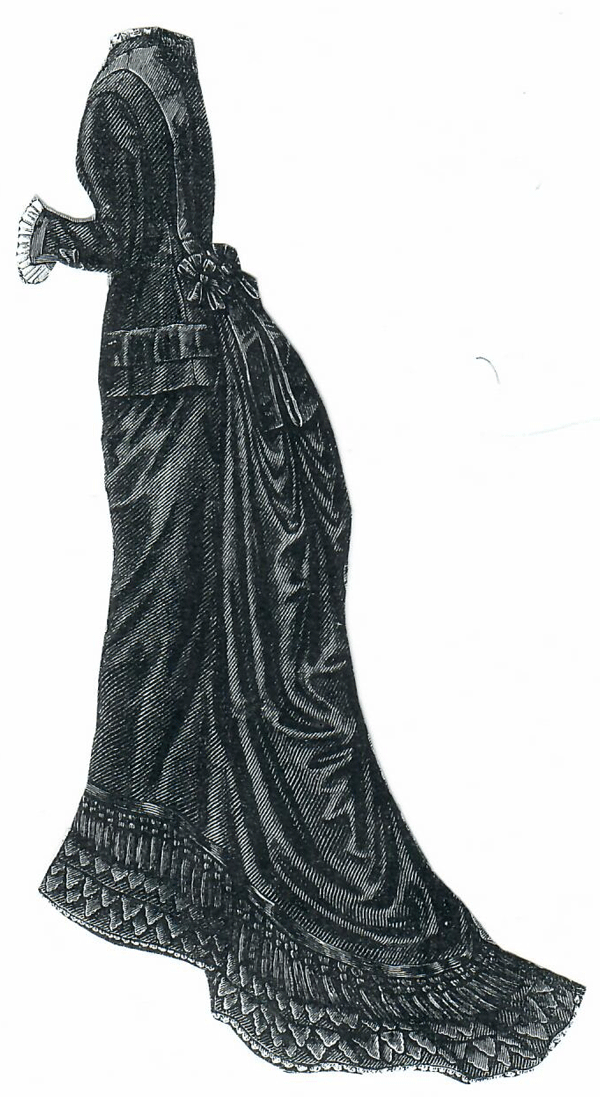 The polonaise is of black Sicilienne and trimmed with a passementerie border