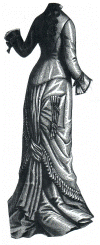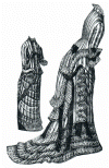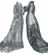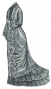 brown Camel's-Hair with a gathered ruffle. The polonaise is of mosaic