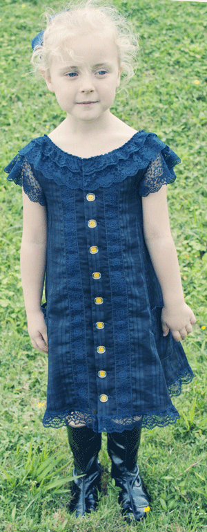1877 Blue Armure Silk Dress for Child 2-3