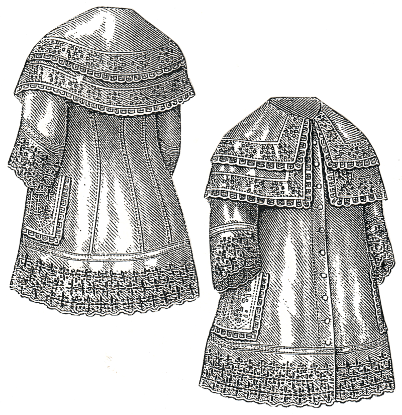 flannel, and is closed in front with pearl buttons and buttonholes.