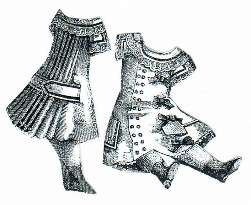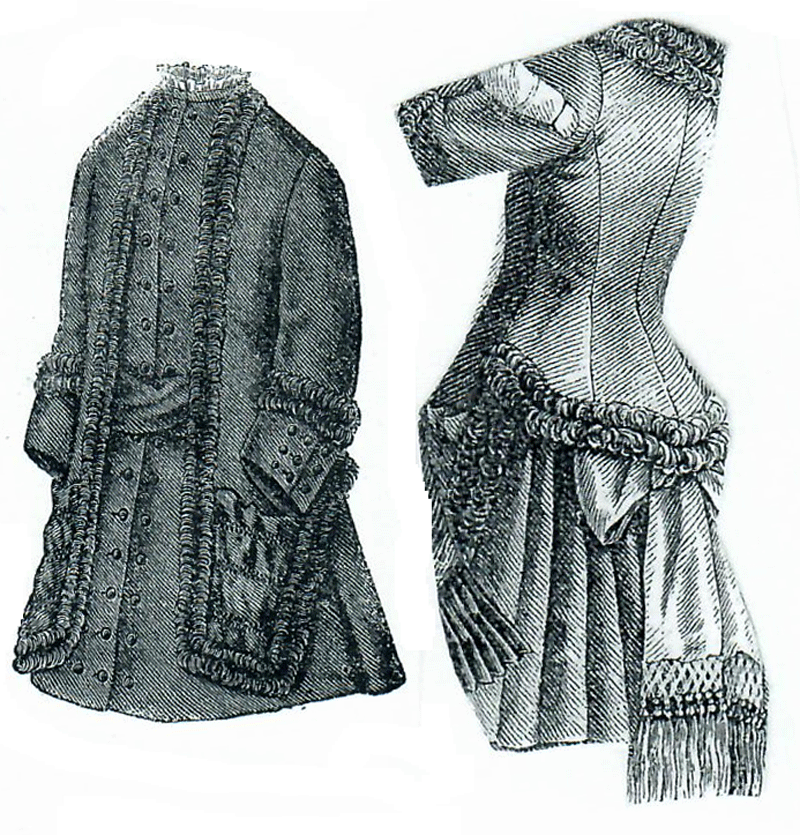 of trousers and blouse trimmed with red worsted braid as shown by the