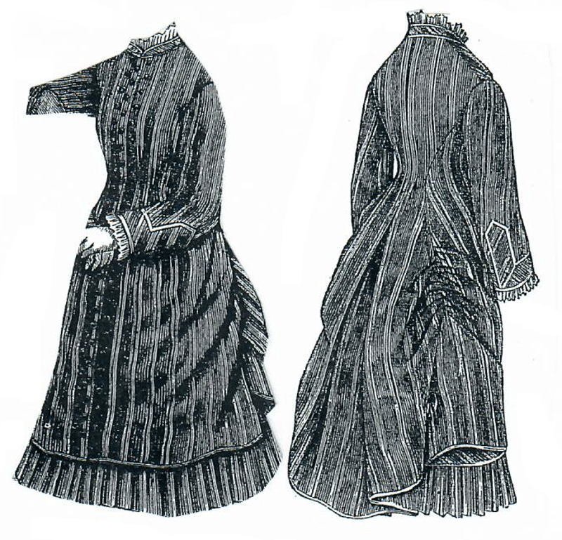striped cashmere, and is closed in the back with buttons and buttonholes.