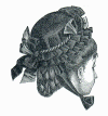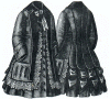trimming consists of side pleated ruffles of velvet, and fold and bows of