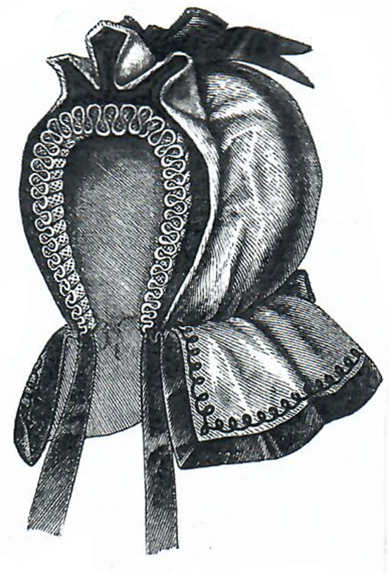 and lined with lustring and wadding. It is trimmed with bows of ribbon