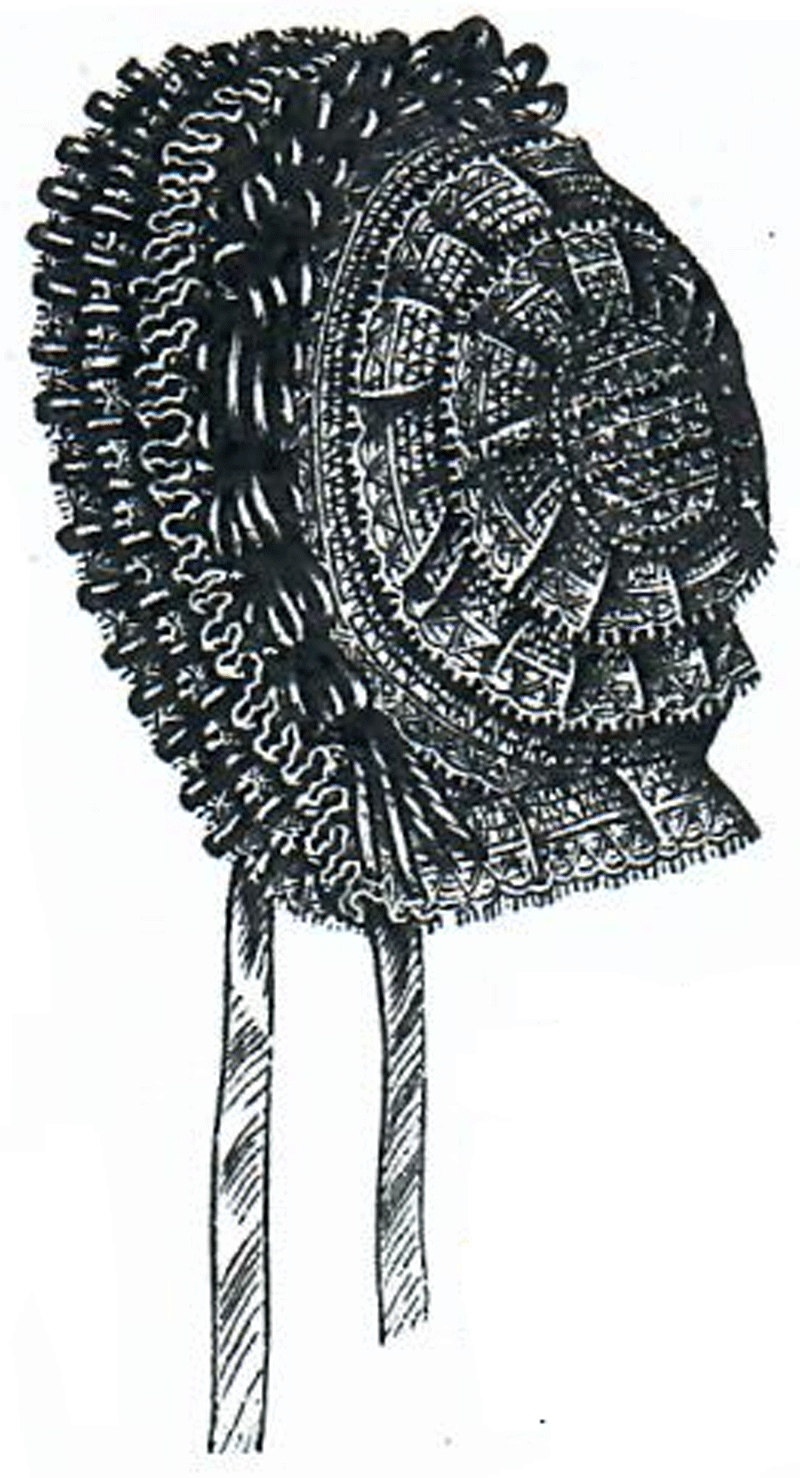 This cap is of white tulle trimmed with