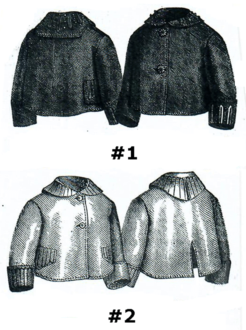 and trimmed with scarlet silk. Jacket #2 is made of white cashmere