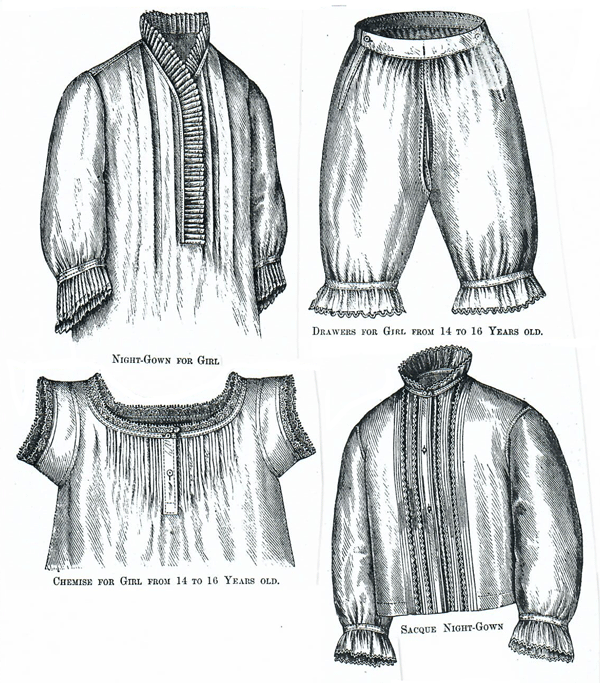 drawers, chemise and sacque nightgown.