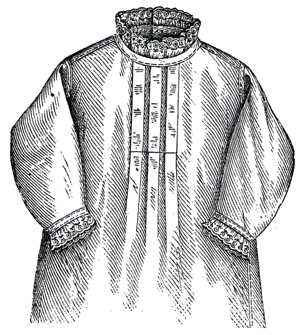 of fine linen, and is closed in the back with buttons and buttonholes.