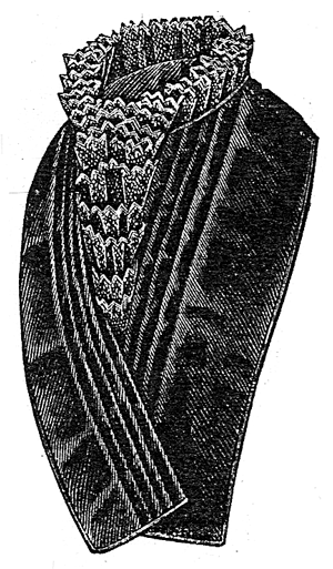 black satin, edged with piping and furnished in the back with hooks and eyes