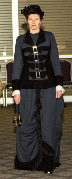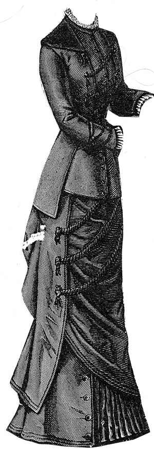 greenish-gray wool. Pattern includes jacket, vest, over-skirt drapery