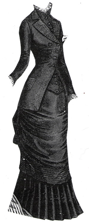 greenish-gray wool. Pattern includes jacket, vest, over-skirt drapery
