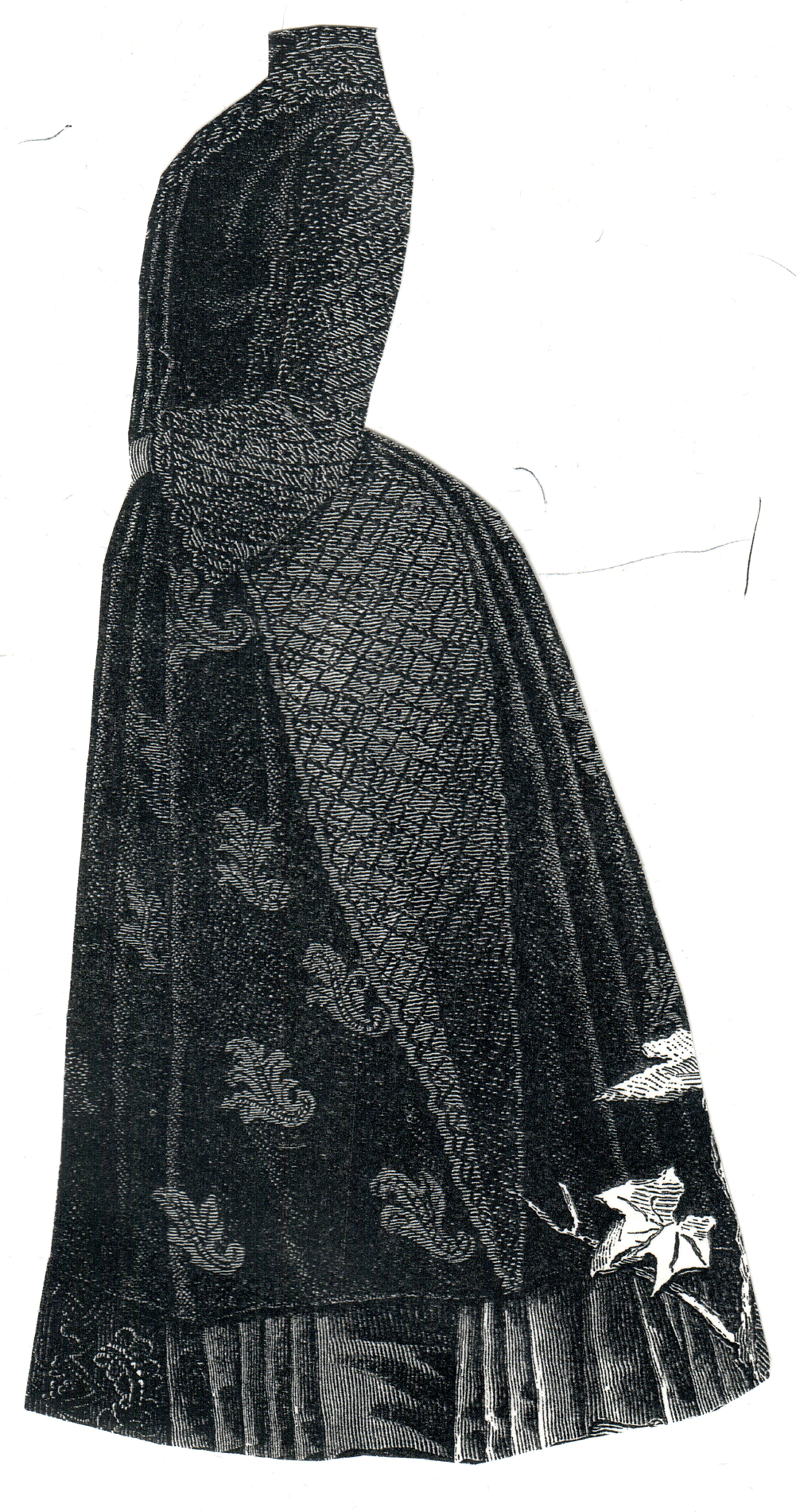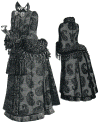 cloak are of plain black velvet, while the collar, sleeves, the yoke for the