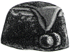 and was trimmed on the side with a feather aigrette and a red ribbon bow.