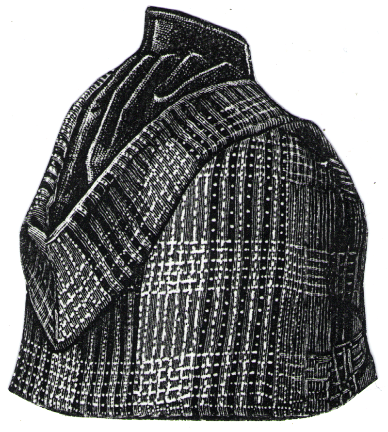 was made of plaid woolen goods that has a brown ground cross-barred with