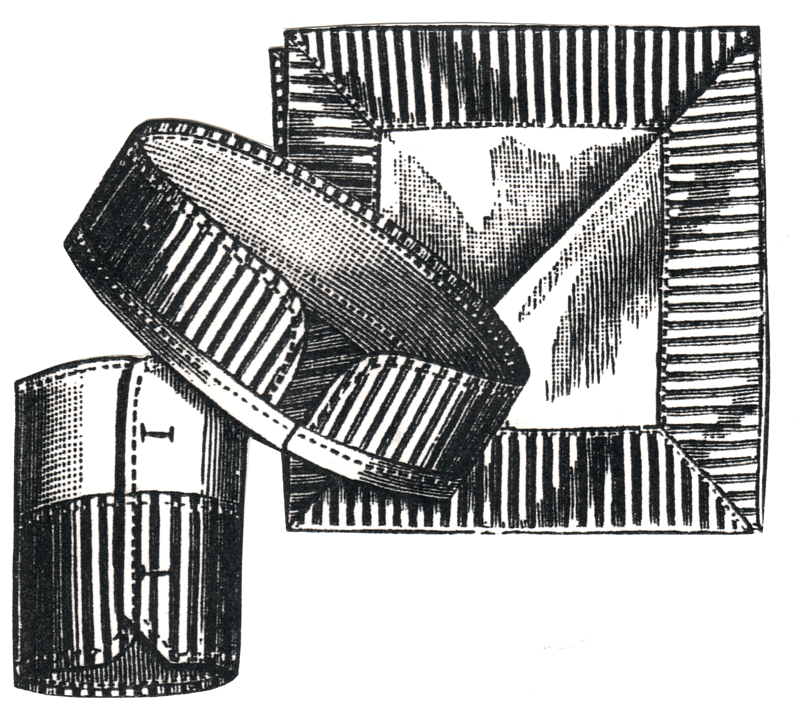 and cuffs of red-striped linen cambric and a handkerchief with a border to