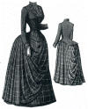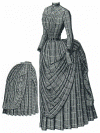 ground and red bars. Pattern consists of bodice, overskirt, foundation