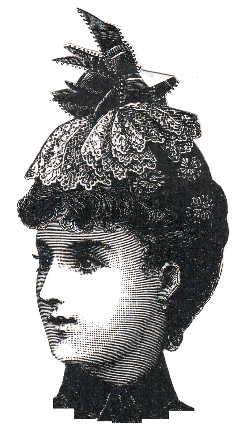junction of the two at the middle; the lace rosette is surmounted by a