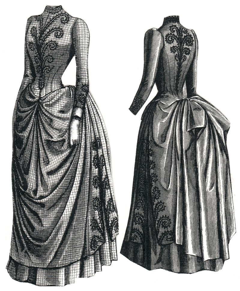 Pattern consists of bodice, drapery, skirt and foundation skirt. (This
