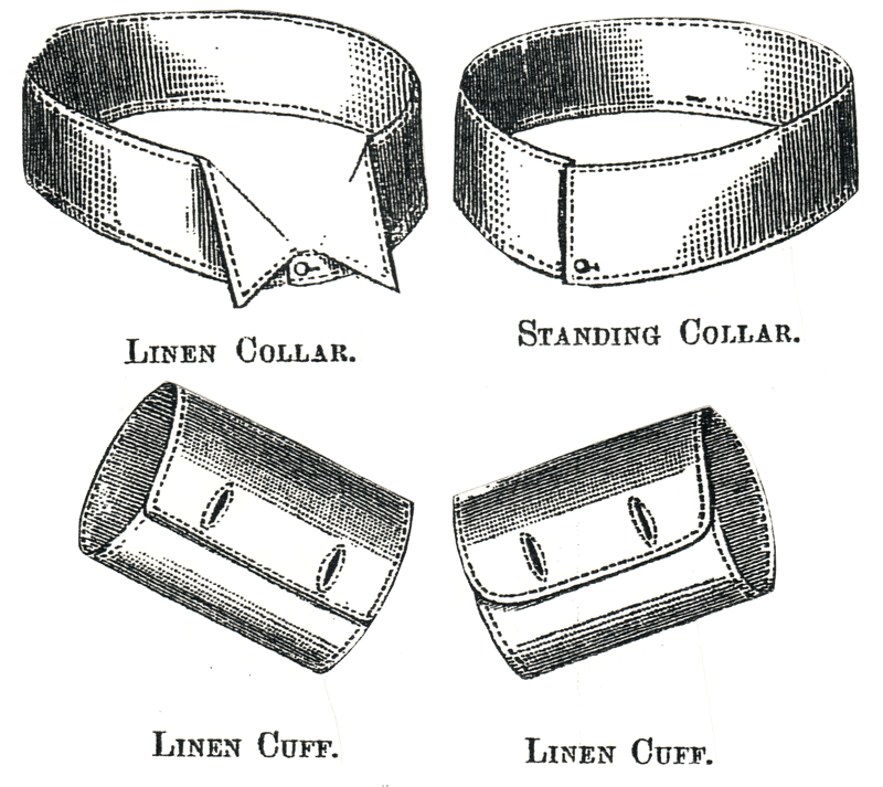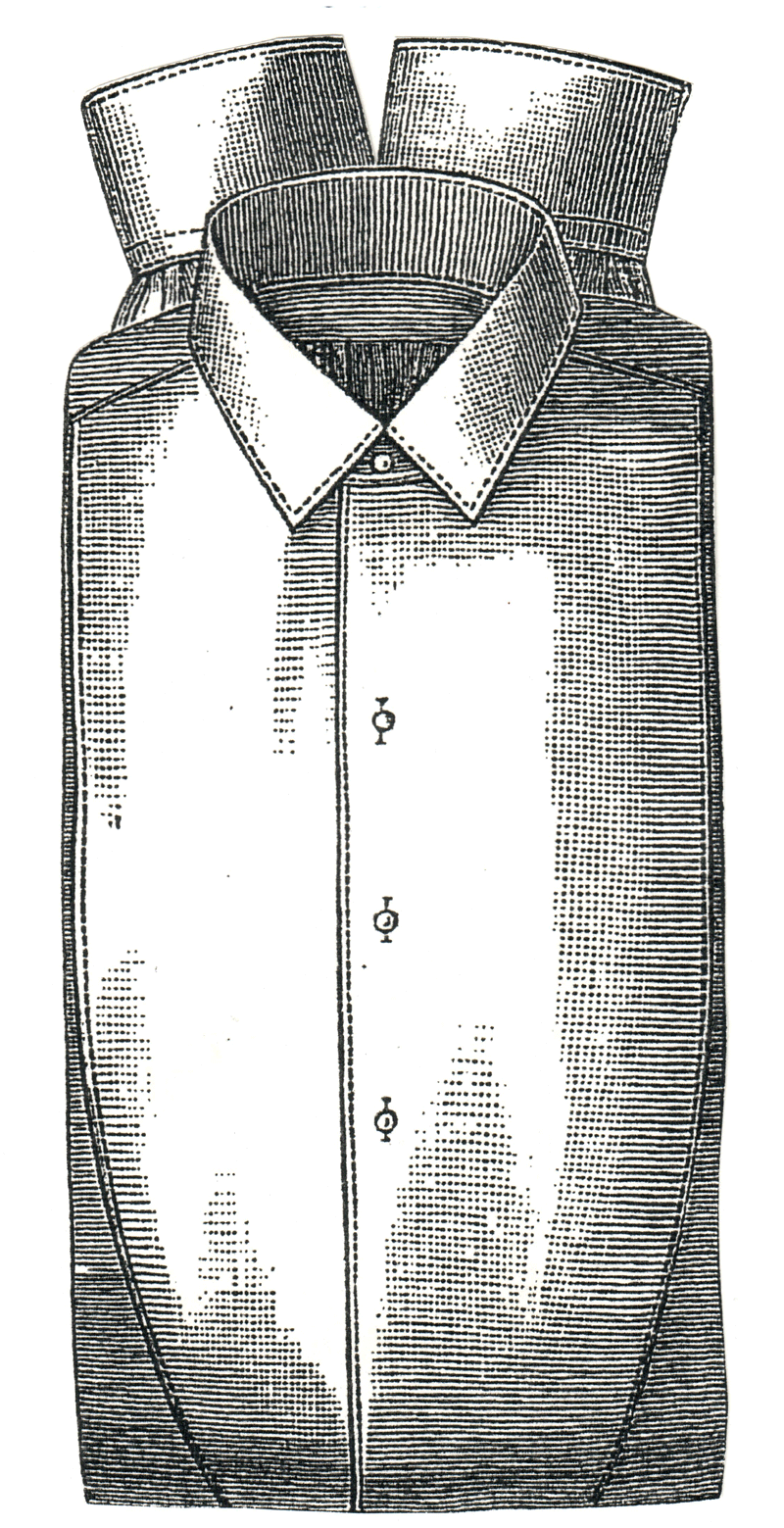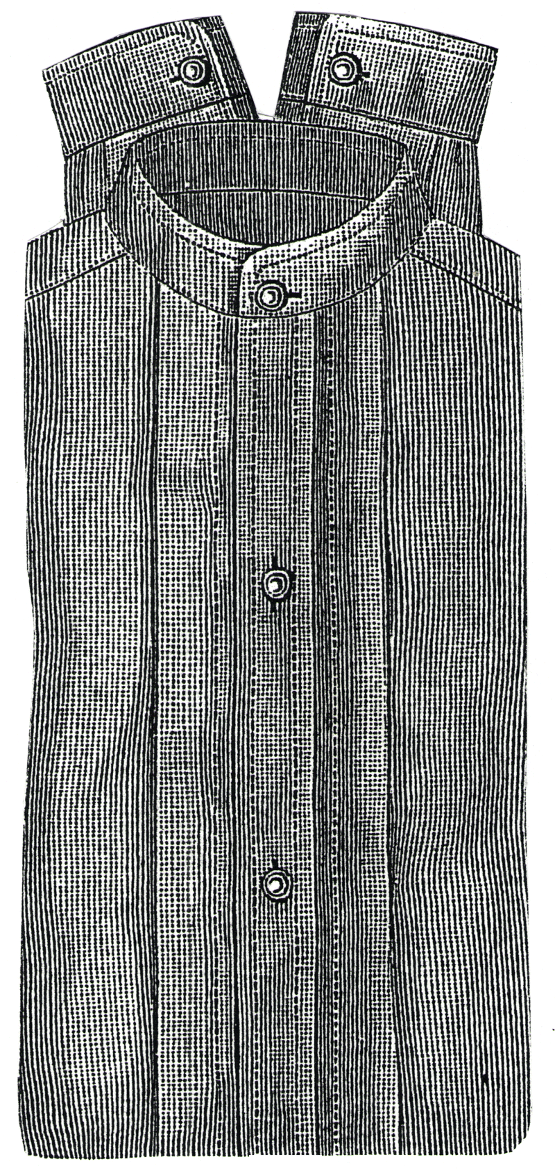 throughout, or of fine shirting muslin with bosom, collar, and cuffs of