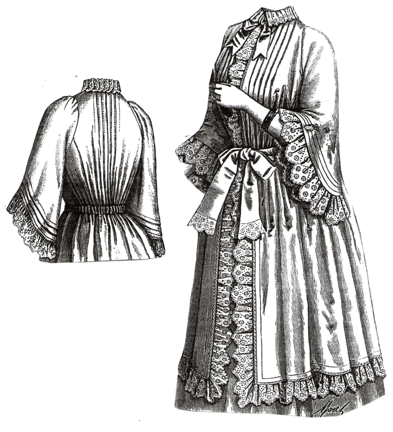 The model illustrated is a morning gown