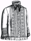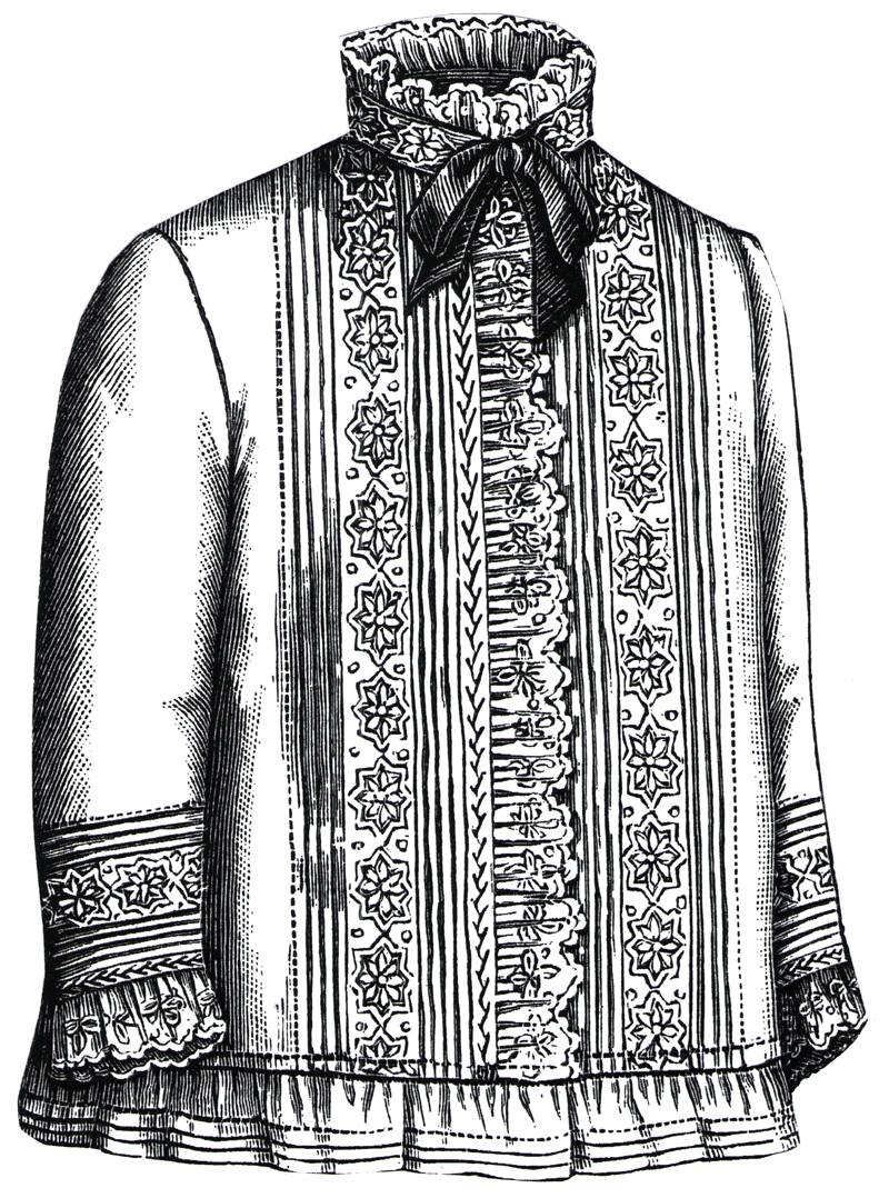 trimmed on the fronts and sleeves with a band of embroidered insertion set