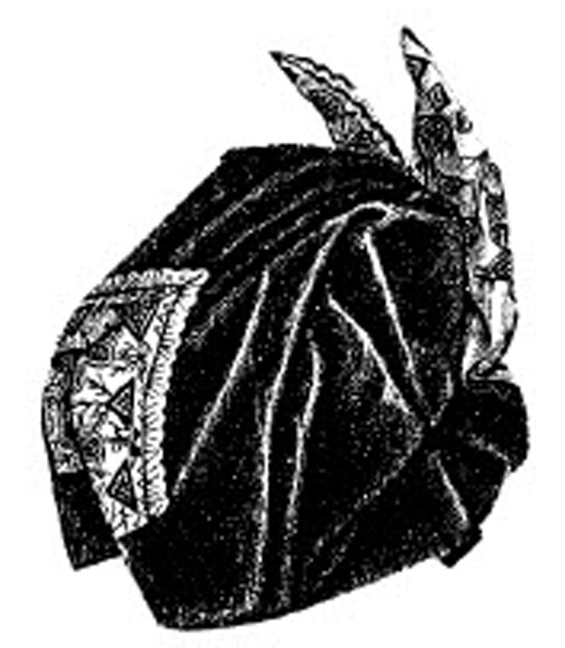 This evening hood was made of a square of