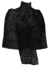 in chrochet with black zephyr wool and a bone needle, and is ornamented when