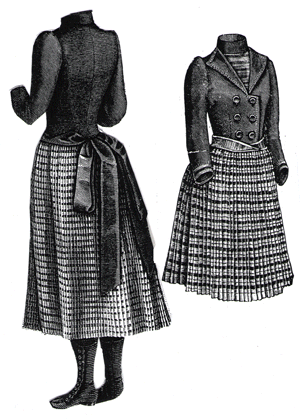 brown, white, and red cross-barred wool. The skirt is joined to the