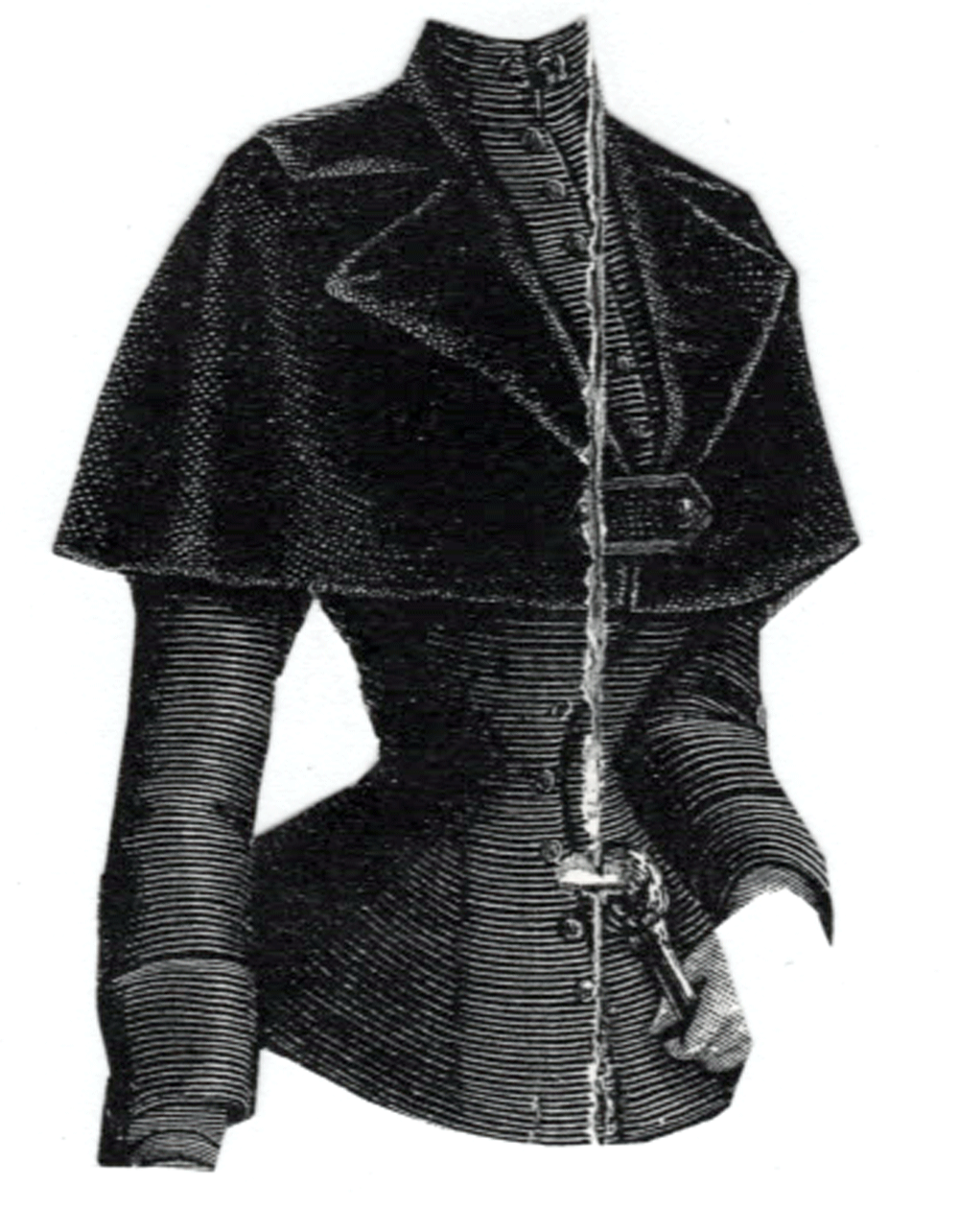 illustrated , this jacket is made of dark green cloth, with a cape of velvet