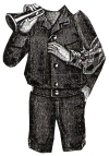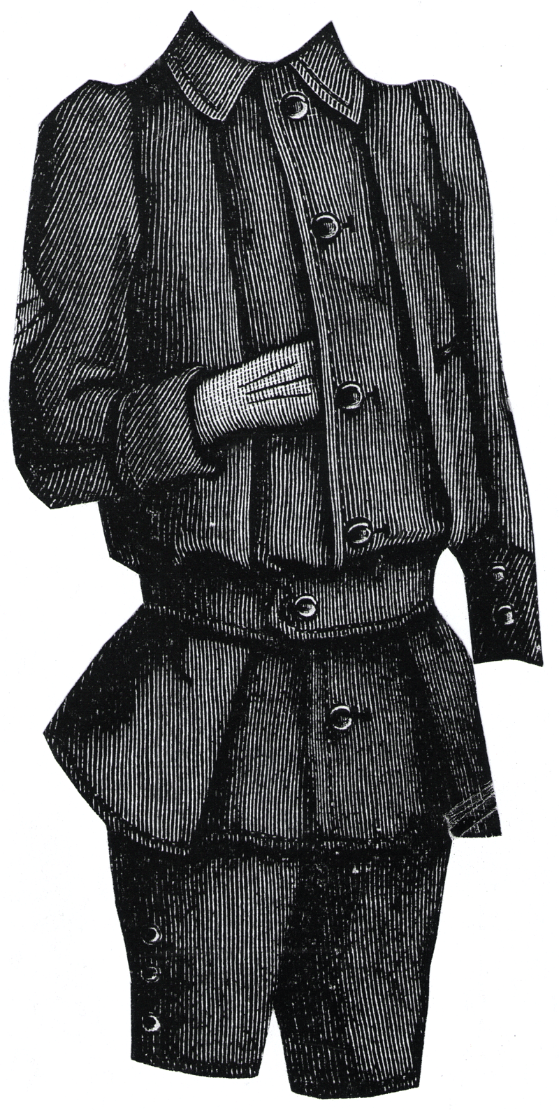 blue Cheviot, consists of trousers which are buttoned to an under-vest and a