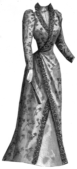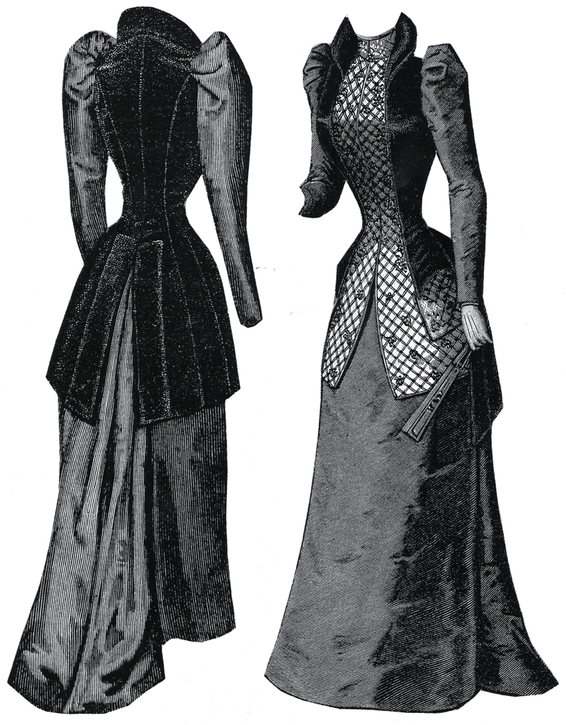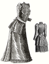 Peau de Soie, with coat bodice of velvet of a darker shade, opening on
