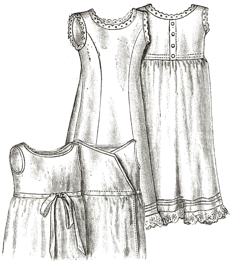 fine white Nainsook, and the bibs are made of white figured sateen and