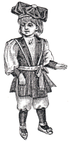 edged with red cashmere and is kilt pleated. The bodice is of red