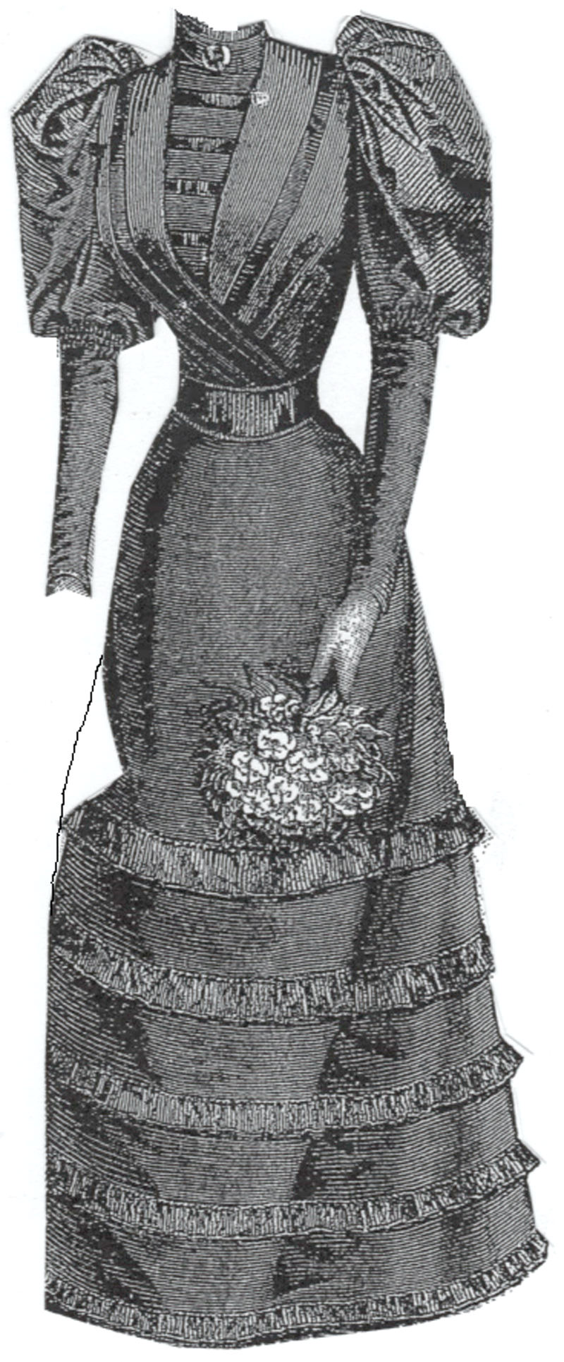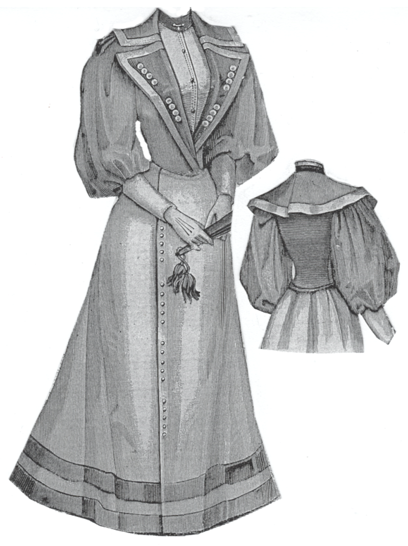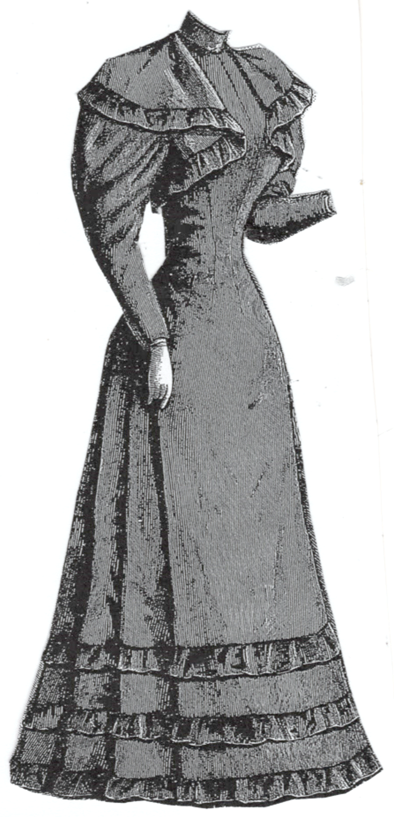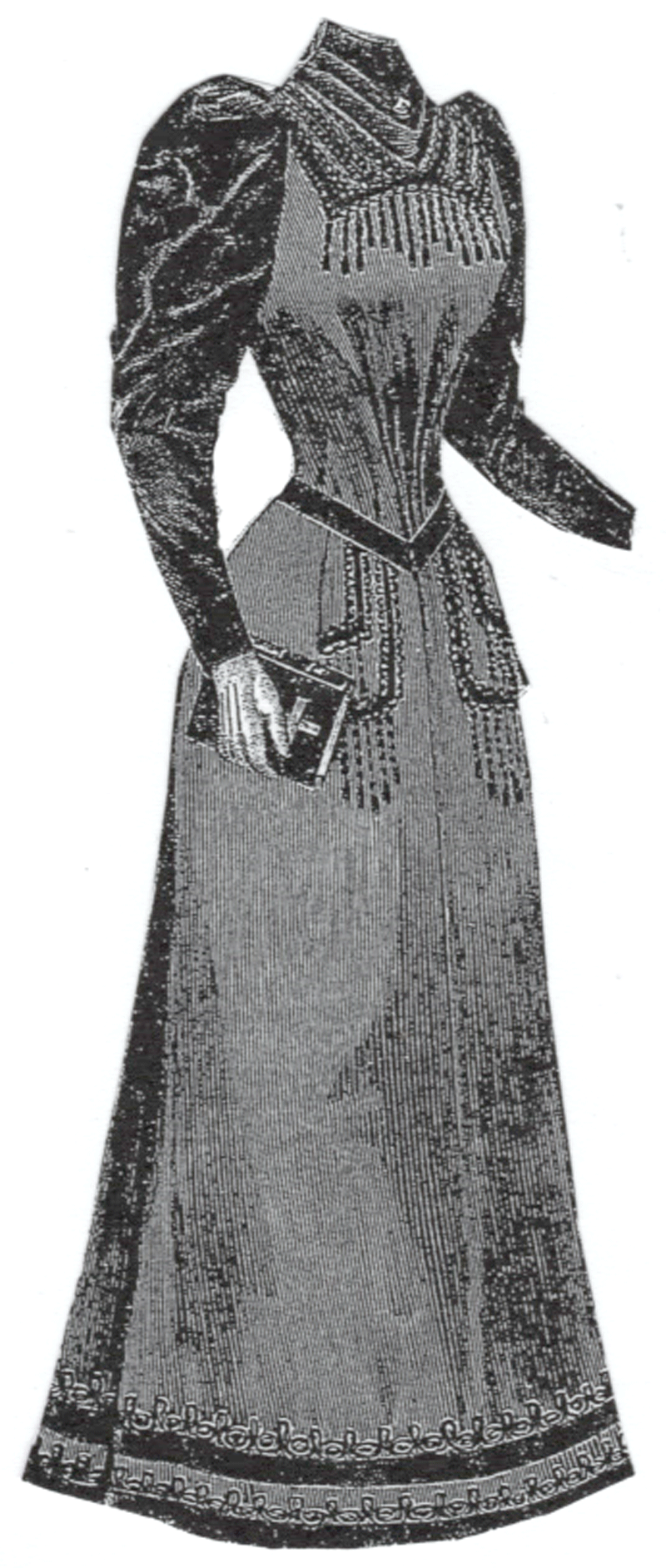 THE GOWN ILLUSTRATED IS OF BROWN SERGE,
